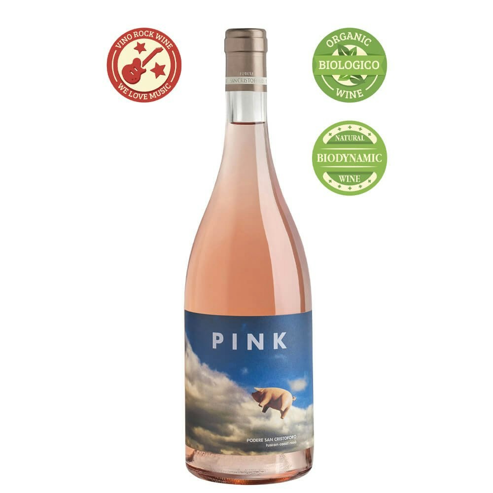 Rosé from gently pressed Sangiovese grapes fermented naturally with indigenous yeasts. The low yields and the deep gravelly soils near the sea give us an interesting rosé with a variety of subtle scents and flavors. In addition, the label is a true creative gem: inspired by the legendary Algie - the inflatable pig used by Pink Flyd for the album cover "The Animals" - a symbol of freedom for all the best music fans!